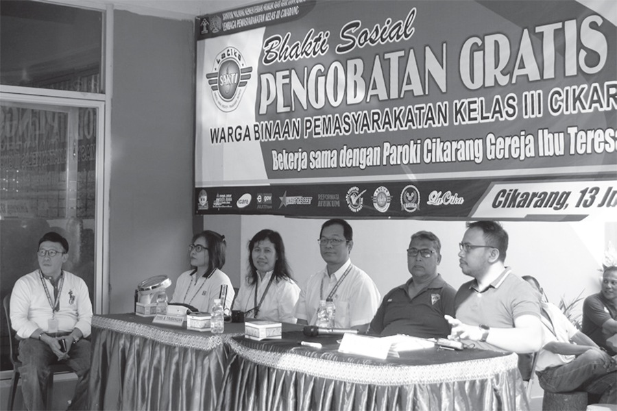 Tim Medis yang bertugas adalah 5 dokter (gabungan dari Rise & Shine Ministry serta Paroki Cikarang), 3 Perawat dari pihak Lapas serta 4 Apoteker dari Paroki Cikarang. Jumlah pasien yang berobat sebanyak 239 orang. Kegiatan ini dihadirijuga oleh Bapak Dwi Fuad Janali (Kasubsi Pembinaan), Bapak Lutfi Ari Bimoko (Kasubsi Keamanan & Ketertiban), Bapak Sunoto (Kasubsi Admini & Oreintasi), Pdt. John J. Manoppo, M.Div (Ketua Umum Lembaga Misi Pelayanan Penjara Indonesia “Rise & Shine Ministry) dan Bapak David Susanto (Kordinator Rise & Shine Ministry Cikarang).