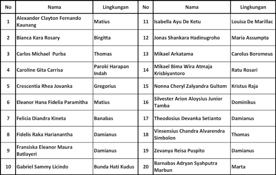 6 Agustus 2023 pukul 10.00 pagi, adalah waktu pelaksanaan ibadat penerimaan Sakramen Baptis untuk bayi dan anak-anak. Ibadat dilaksanakan di Trinitas dipimpin oleh Romo Camellus Delelis Da Cunha, Pr. Sakramen Baptis ini diterimakan kepada 20 bayi dan anak-anak dari beberapa lingkungan. Proficiat kepada seluruh keluarga bayi dan anak-anak atas Sakramen Baptis yang telah diterima.