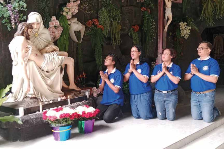 Kegiatan Persembahan Mawar bagi Bunda Maria kali ini tidak terpusat di satu lokasi. Kami mendistribusikannya ke 10 Gua Maria/ Taman Doa yang ada di wilayah Keuskupan Agung Jakarta. Setiap team terdiri atas 4 atau 5 orang.