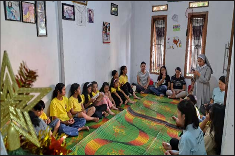 Kegiatan diawali dengan sapaan dan lagu pembuka yang dipandu oleh pendamping BIA (Kak Lenti), guna menciptakan suasana yang hangat, akrab, dan penuh sukacita. Selanjutnya, doa pembuka dipimpin oleh seorang anak BIA yang ditunjuk, sebagai bentuk keterlibatan aktif anak-anak dalam kehidupan doa bersama. Pada bagian utama kegiatan, anakanak mengikuti pendalaman firman dan renungan yang dibawakan oleh Sr. Carolin, SFMA. Renungan disampaikan dengan bahasa yang sederhana dan mudah dipahami, sehingga membantu anak-anak mengenal makna masa Adven, khususnya tentang penantian penuh sukacita akan kelahiran Yesus Kristus.