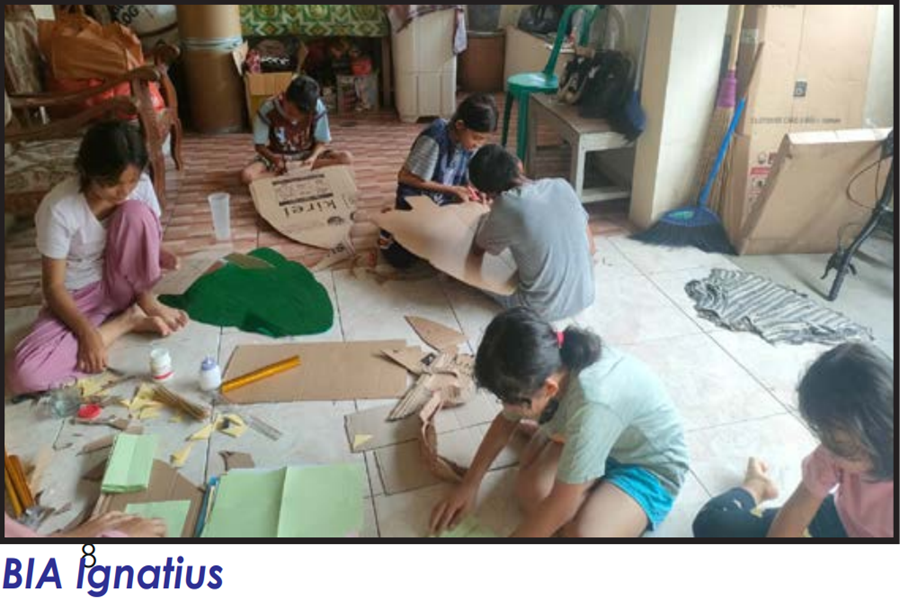 Sejalan dengan pembinaan iman tersebut, kreativitas anak-anak turut berkembang melalui berbagai aktivitas di lingkungan. Anakanak menyiapkan hiasan atau ornamen Natal yang akan dipasang di gedung gereja maupun di kelas-kelas. Ornamen-ornamen ini dibuat dengan semangat cinta yang besar, mulai dari kreativitas pohon Natal berbahan karton hingga berbagai hiasan unik lainnya.
