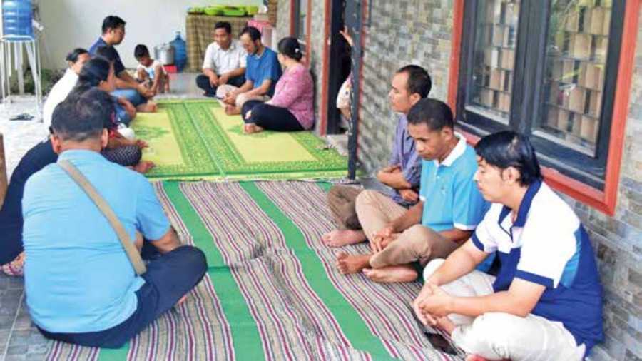 Cuaca mendung di sore hari yang hangat ini diakhiri dengan makan bersama yang diawali dengan doa yang dipimpin oleh Bapak Harsono. Kamipun menikmati hidangan yang telah disiapkan dengan penuh kehangatan dan kami juga merasakan penuh sukacita kasih Tuhan dalam kebersamaan hingga tak terasa acara telah usai.