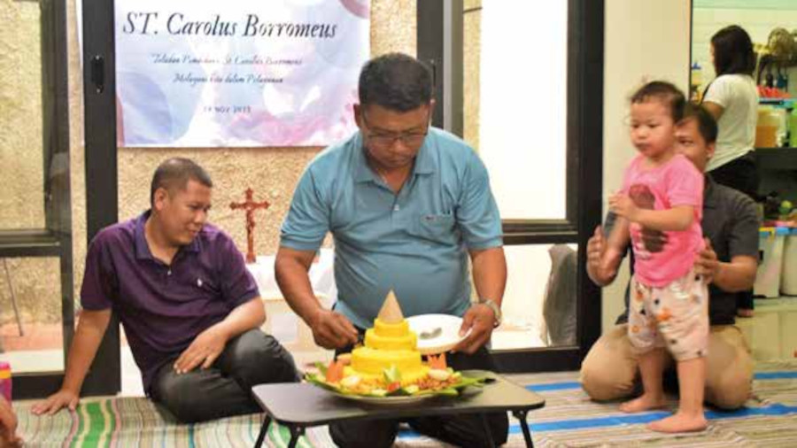 Setelah selesai Ibadat, dilanjutkan dengan ramah tamah yang dibuka oleh Bapak Gabriel Hendri selaku Ketua I Lingkungan St. Carolus Borromeus. Beliau menceritakan ide dan proses perayaan ini berlangsung dengan sangat guyup, terlihat bagaimana kami terus belajar untuk menjadi lingkungan yang hidup dan menyenangkan. Kemudian acara potong tumpeng yang dilakukan oleh Pak Harsono sebagai salah satu umat senior yang tetap semangat dalam pelayanan dari awal terbentuknya lingkungan hingga kini masih menjabat sebagai Ketua II Lingkungan St. Carolus Borromeus dan diberikan kepada Pak Gabriel Hendri sebagai perwakilan penerus kaum muda untuk terus berkarya di lingkungan dalam berbagai bentuk pelayanan.
