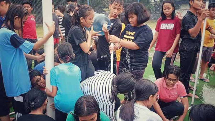 Setelah sesi ke-2 berakhir, terlihat kakak-kakak OMK sudah menunggu dilapangan, dan tanpa buang waktu para peserta mulai berganti pakaian dengan pakaian OR, karena acara akan dilanjutkan di lapangan dengan sesi Dinamika Kelompok, dimana para peserta dikumpulkan untuk sesi permainan dan games. Dalam sesi ini terlihat anak-anak peserta camp mulai basah kuyup karena di sesi ini kakak OMK sudah mempersiapkan permainan yang menggunakan air sehingga semakin memeriahkan suasana.