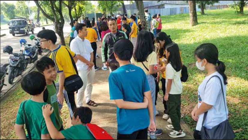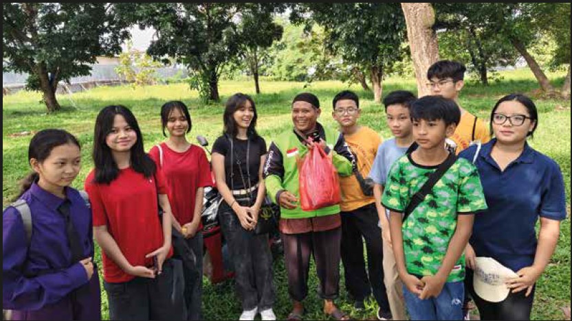 Selanjutnya adalah aktivitas berdinamika kelompok. Setelah ice breaking bersama Kak Surya, kami dibagi menjadi 7 kelompok yang terdiri dari 7-10 orang. Setelah bergabung dengan kelompok, kami berjalan keluar dari area taman Sekolah Trinitas untuk menemui bapak-bapak ojek online (ojol) yang sudah dimintain tolong kakak-kakak panitia untuk kami temui pertanyaan yang kami ajukan kepada beliau. Kemudian kami memberikan memberikan bingkisan berupa paket sembako. Eitss... belum selesai, masih harus bikin TikTok bareng sama bapak Ojolnya. Karena kelompok kami laki-laki semua, jadi gerakannya kurang begitu variatif, tapi kami senang kok, Pak Jajang pun asik berjoget, mantap kaan. Yaaa paling tidak, bisa merekam gerakan kami dan sekali take sudah cukup. Akhirnya sudah habis waktunya dan kami pamit dan foto bersama bapak Ojol. Saya bisa belajar bahwa ternyata menjalani hidup itu tidak selalu mudah. Apalagi sebagai Ojol, penghasilan tidak terlalu banyak dan masih harus membiayai anak-anaknya untuk sekolah.