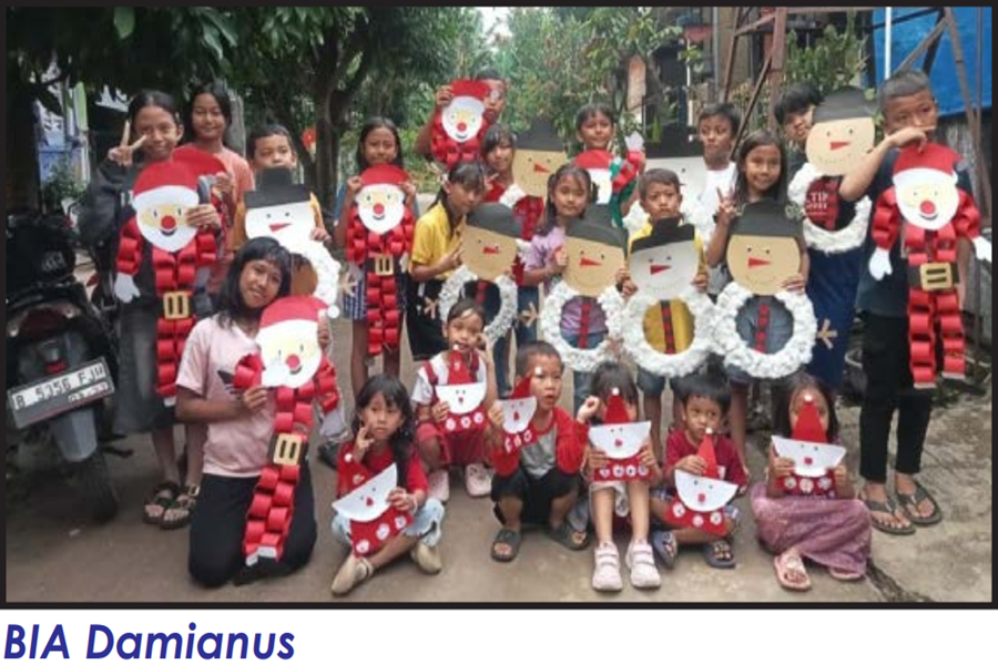 Sejalan dengan pembinaan iman tersebut, kreativitas anak-anak turut berkembang melalui berbagai aktivitas di lingkungan. Anakanak menyiapkan hiasan atau ornamen Natal yang akan dipasang di gedung gereja maupun di kelas-kelas. Ornamen-ornamen ini dibuat dengan semangat cinta yang besar, mulai dari kreativitas pohon Natal berbahan karton hingga berbagai hiasan unik lainnya.