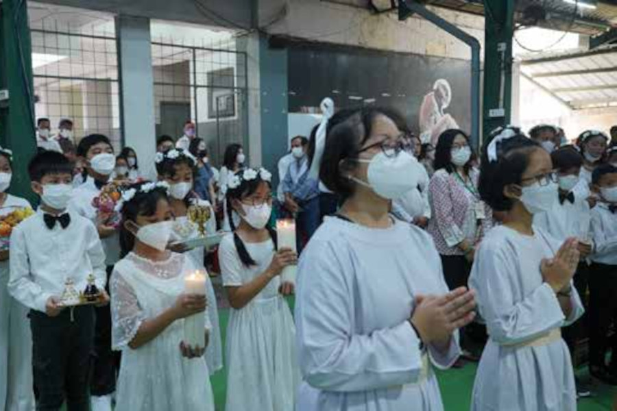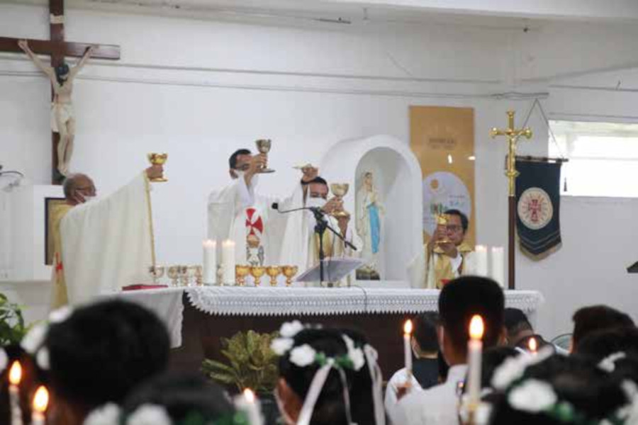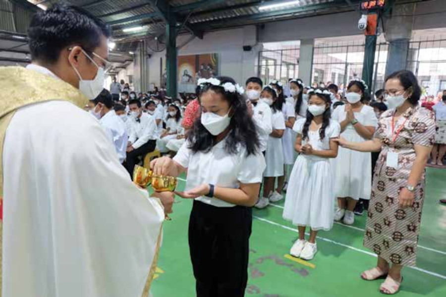 Minggu, 11 Juni 2023 merupakan hari yang penuh kebahagiaan bagi anakanak calon penerima Komuni Pertama di Paroki Cikarang. Setelah melalui proses pembinaan yang cukup panjang, akhirnya bertepatan dengan Hari Raya Tubuh dan Darah Kristus, untuk pertama kali anak-anak bisa menyambut Tubuh dan Darah Kristus dalam Sakramen Ekaristi.