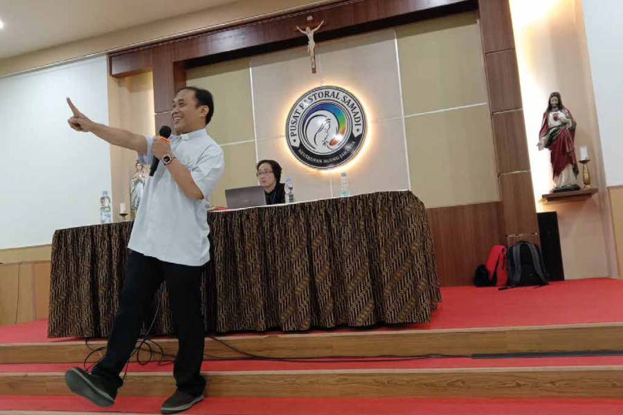 Bersyukur karena cuaca saat itu sangat cerah dan seluruh rangkaian acara berjalan dengan lancar dan menarik. Diawali dengan registrasi, pengambilan nametag dan snack. Tepat pukul 08.30 acara dimulai dengan tepuk semangat oleh Kak Debie - perwakilan dari KOMKAT KAJ. Semua peserta termasuk Romo Carolus Putranto Trihidayat yang akrab disapa Romo Uut ikut bernyanyi sambil menari lagu sekolah minggu selayaknya seperti sedang mengajarkan anak Bina Iman setiap minggunya.