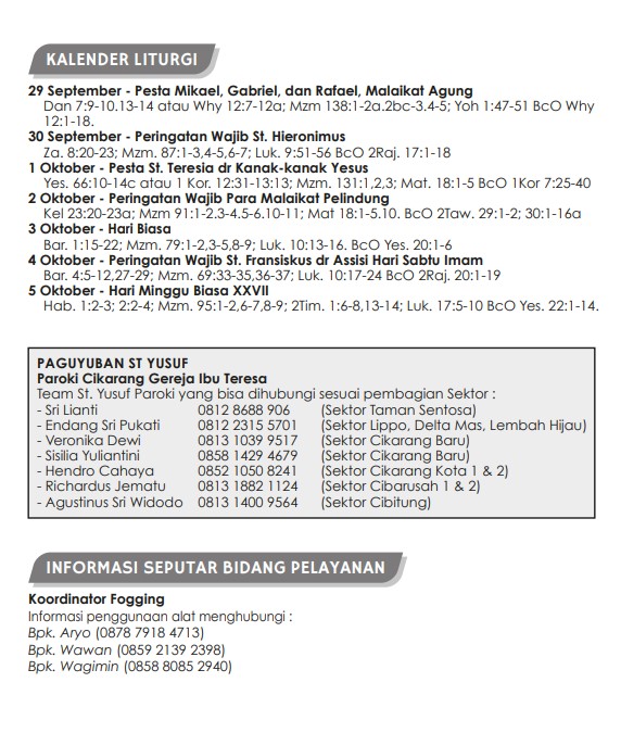 Pengumuman Gereja - Paroki Cikarang Gereja Ibu Teresa