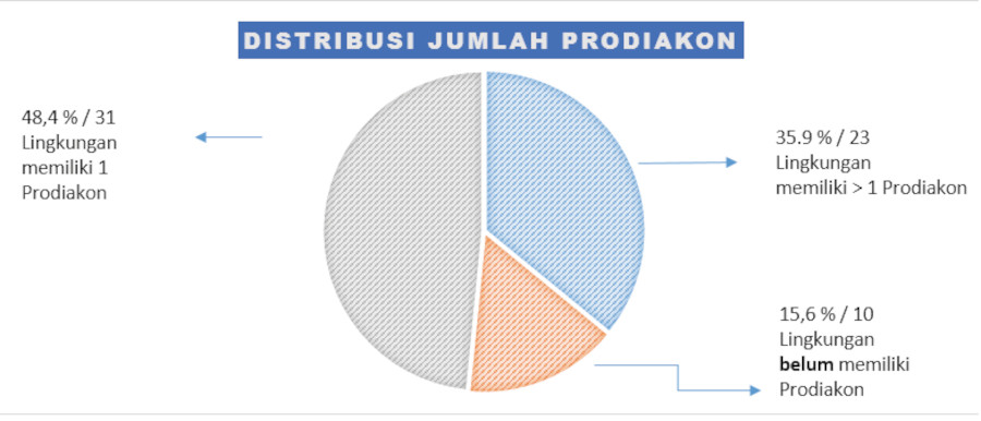 Ibu Herlina menyampaikan fakta menarik dimana kebutuhan Prodiakon saat ini jauh dibawah angka cukup, masih ada 10 lingkungan yang tidak memiliki prodiakon. Idealnya 1 lingkungan memiliki 2 prodiakon. Sedangkan ada “trend” meningkatnya jumlah lansia dan orang sakit yang perlu dilayani. Betapa “Tuaian memang banyak, tetapi pekerja sedikit”. Sementara itu banyak prodiakon yang sebenarnya sudah purna bakti, namun karena jumlah prodiakon jauh dari kondisi cukup, masih diminta kesediaannya untuk “memperpanjang” 6 bulan masa bakti lagi.